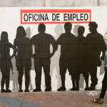 Mientras ellas montaban, VWorkshop siguen con su trabajo fino fino, Agostino Iacurci empieza con los detalles de su increíble mural, los 100pression después de la performance de ayer, continúan inundando las calles de color, Satone sigue incansable delante de su muro y ya se adivina qué estaban esperando tantas sombras en la calle San Pablo, Above ha estado trabajando en una cola del paro rumbo a la oficina de empleo, con una frase contundente, 24% de desempleo.